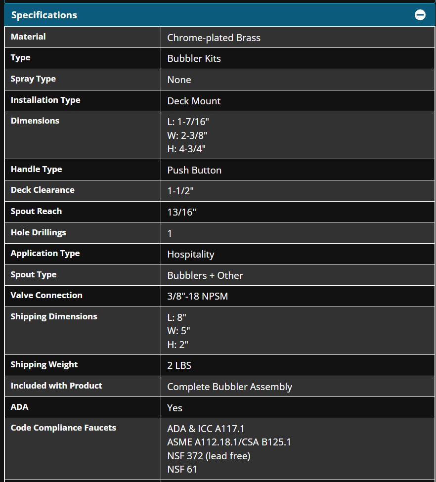 - Push-button valve bubbler designed so that water never comes in contact with lead-containing materials